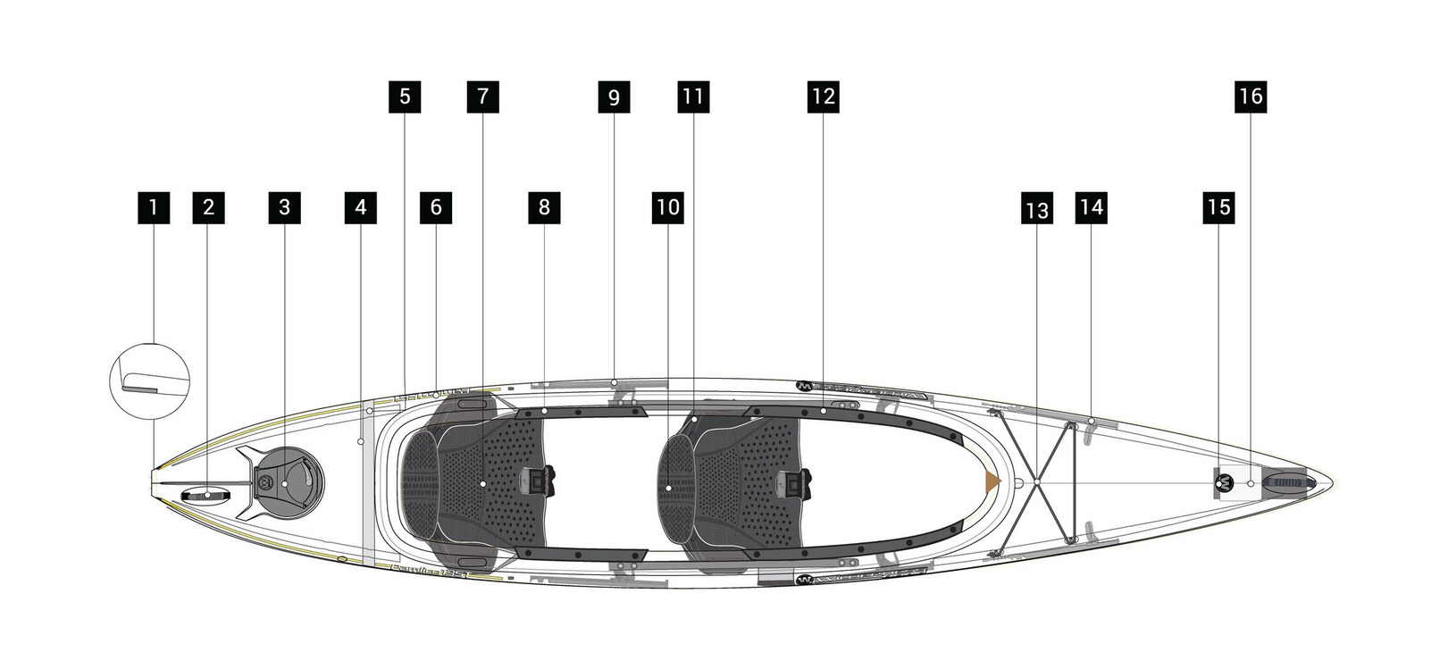 The Pamlico is a great tandem kayak, but you can easily adjust the bow seat by sliding backwards to convert your kayak for solo use.