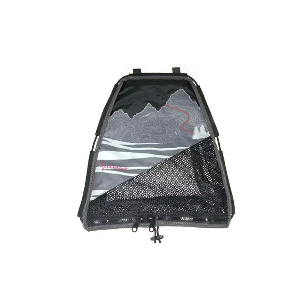 Filet à bagages de remplacement pour le Roam 9.5 de Dagger. Ce filet à bagages Dagger est conçu pour le puits de chargement du kayak. Il est équipé d'une fermeture zippée et mesure 48,26 cm (19 po) de l'avant à l'arrière et 39,37 cm (15,5 po) de diamètre. Le dessus du filet arbore un logo imprimé évoquant une carte topographique. Plusieurs points d'attache sont présents pour le fixer facilement aux modèles récents du kayak Roam 9.5. Le filet peut également servir de sac à dos grâce à ses sangles.