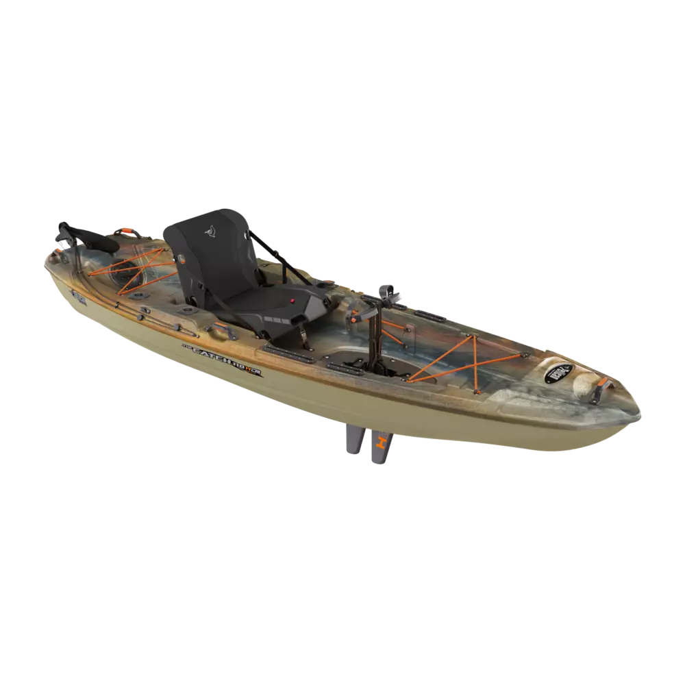 Vous pourrez parcourir de longues distances sans vous fatiguer les jambes. Le système de pédales HyDryve II permet de manœuvrer dans les eaux peu profondes ou autour de plantes aquatiques en toute facilité. Le kayak de pêche Catch 110 HDII offre également des caractéristiques pratiques telles que de multiples porte-cannes à pêche encastrés, des porte-bouteilles et des porte-boîtes à leurres, un œillet pour les accessoires, un compartiment de rangement de jour de 20 cm (8 po) avec sac de rangement et deux compartiments de rangement supplémentaires.