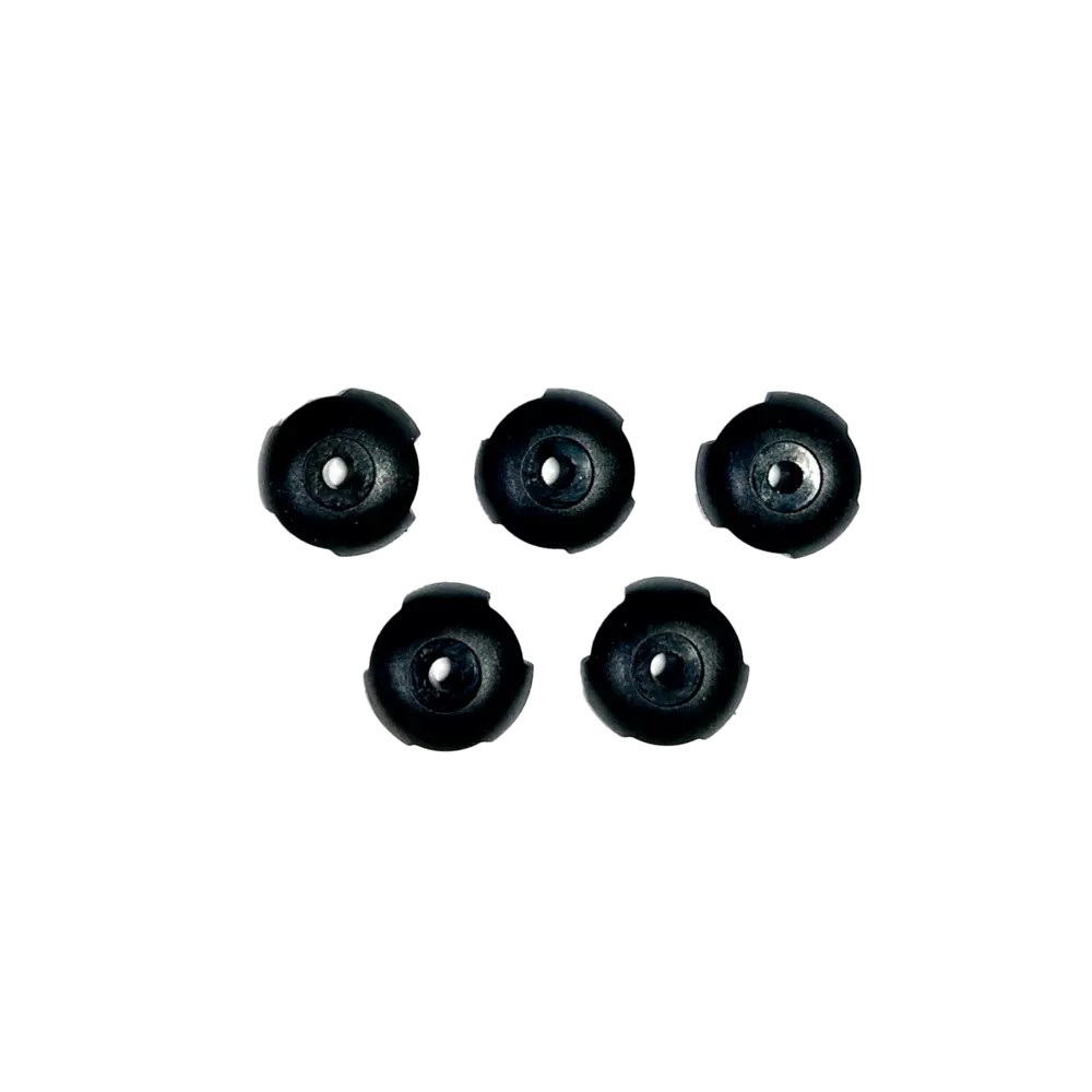Le lot de cinq raccords de pont ronds est couramment utilisé sur certains kayaks de marque Perception. Les raccords permettent le maintien d'un cordage de gréement de pont d'un diamètre de 0,64 cm (1/4 po) ou un cordage élastique au travers des trois trous autour du périmètre. Se monte sur une surface plane du pont. Le raccord mesure un peu plus de 2,5 cm (1 po) de diamètre et pas plus de 1,2 cm (1/2 po) de haut. Fabriqué en nylon de plastique noir. Quantité : 5